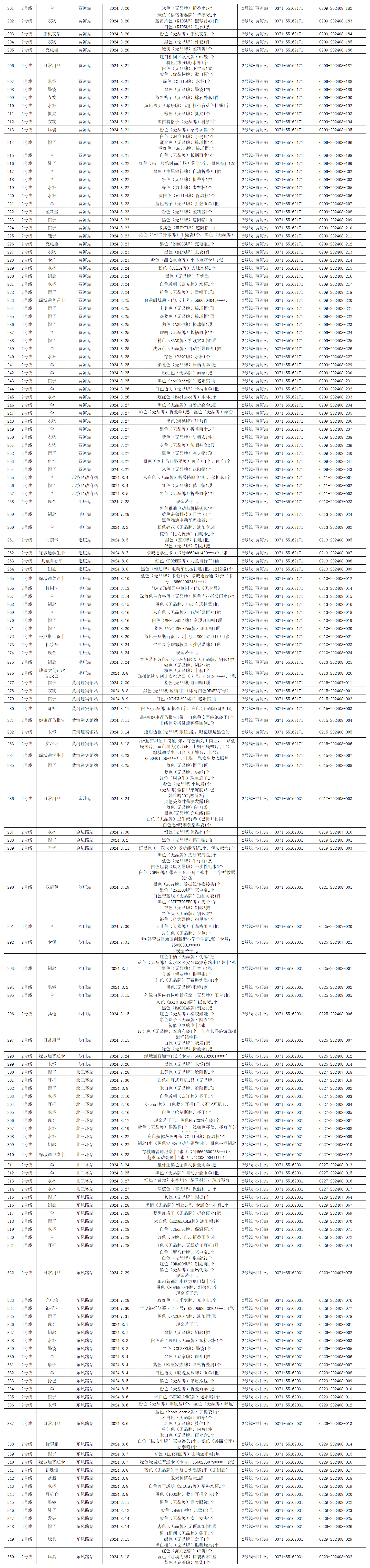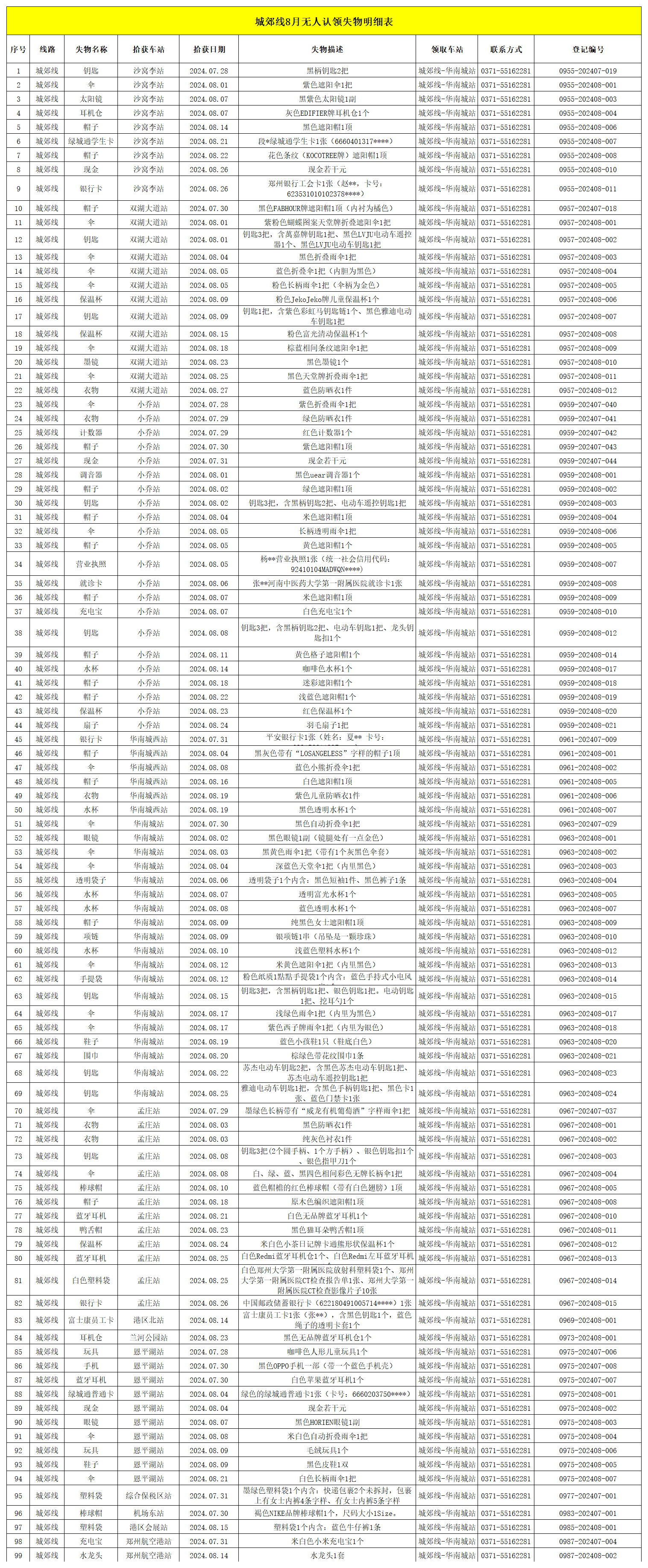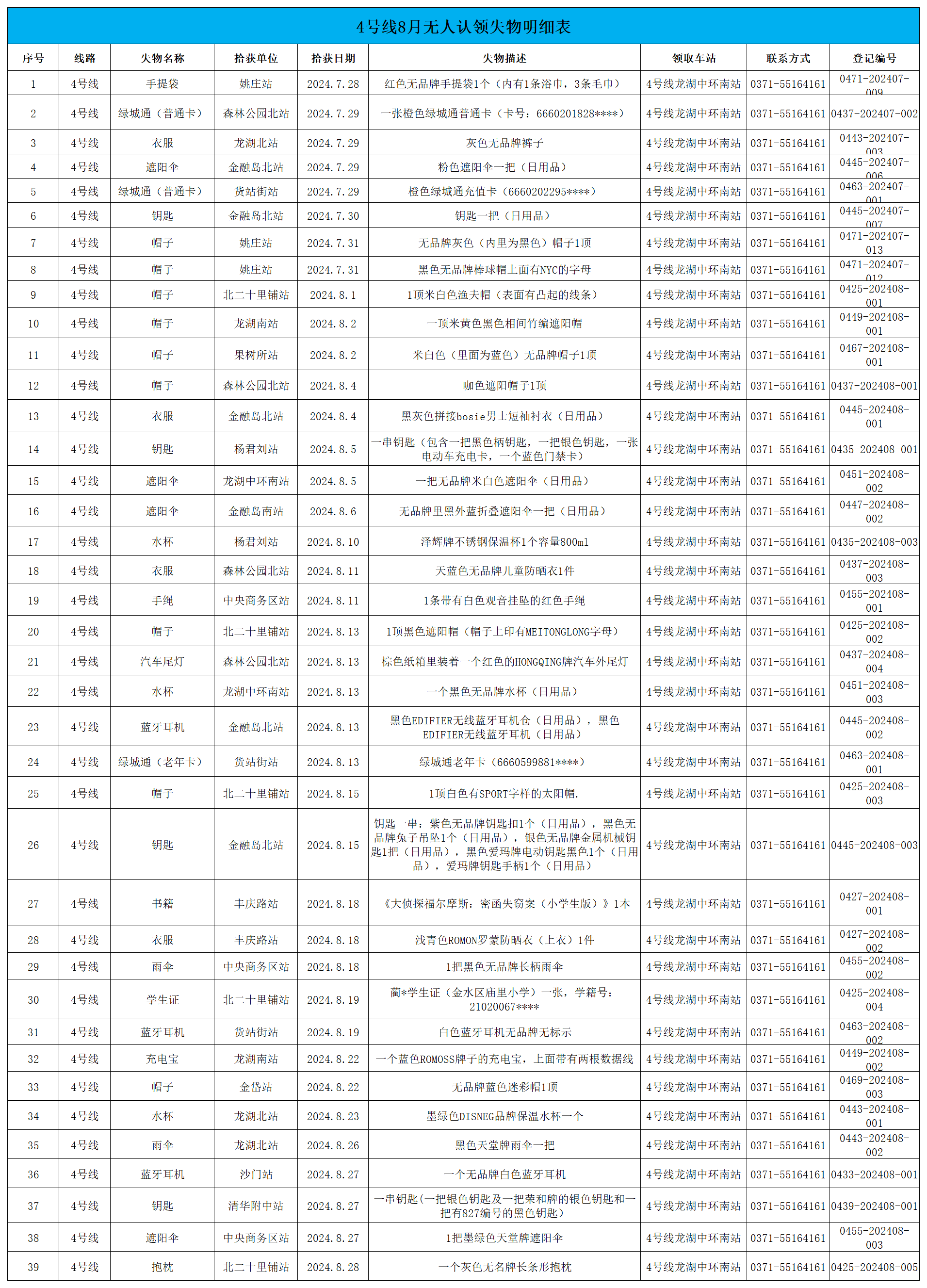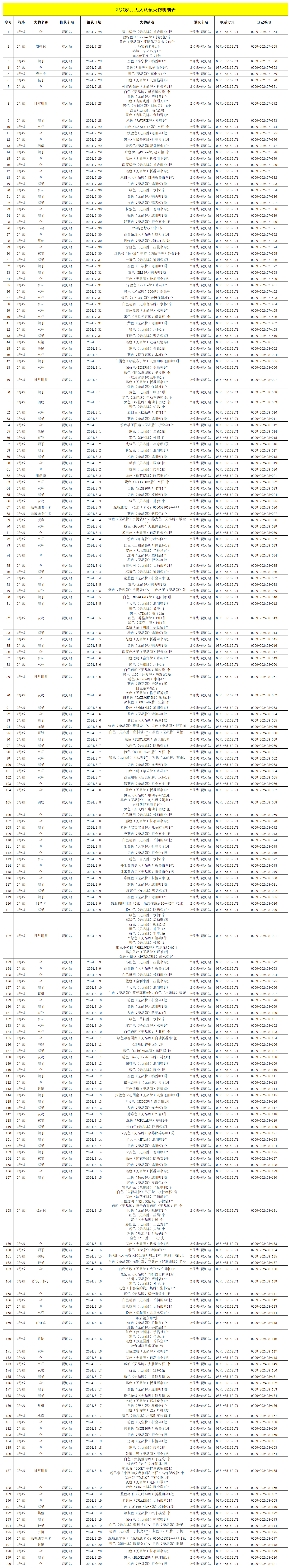 2024年7月28日—2024年8月28日车站无人认领失物情况