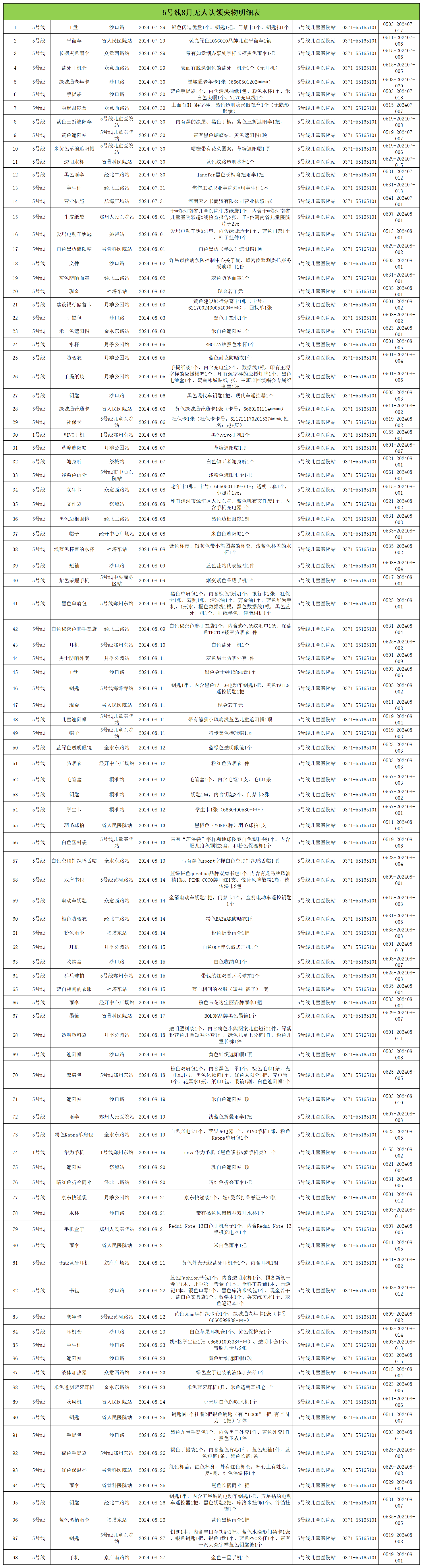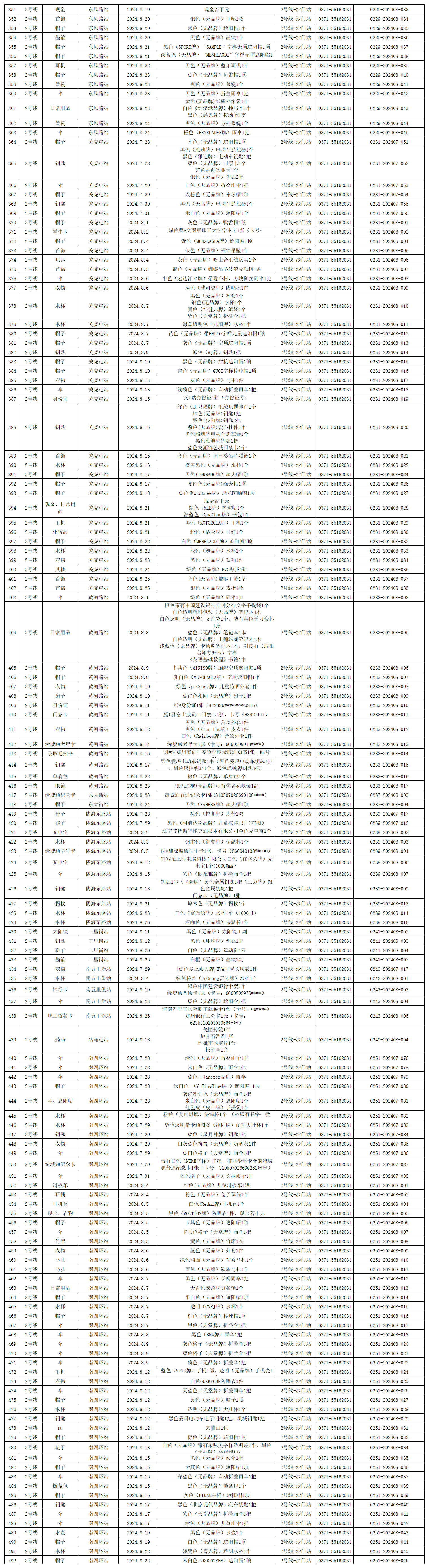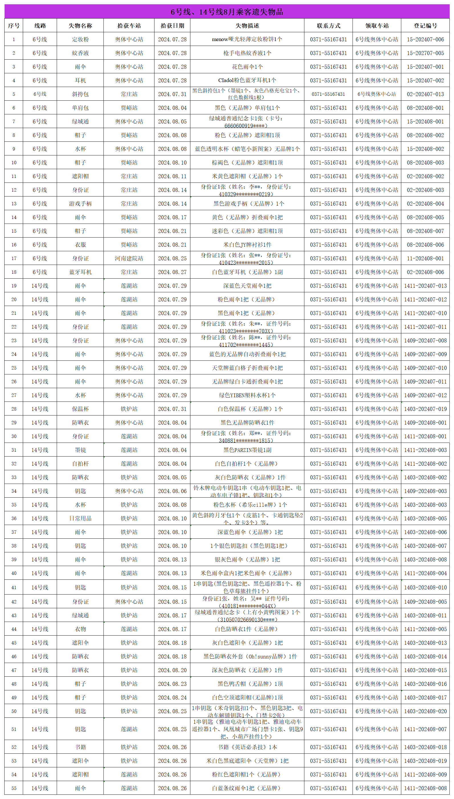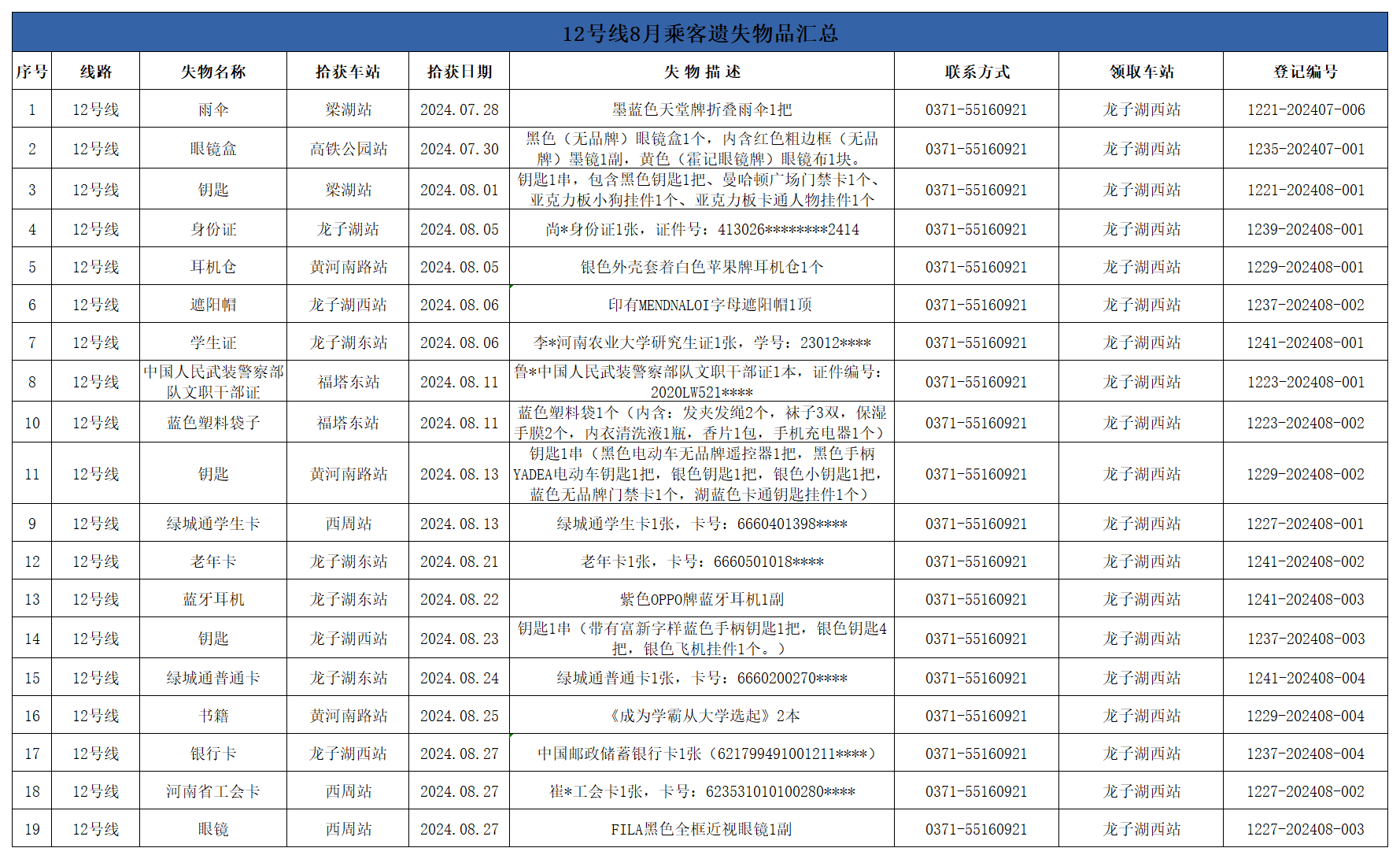 2024年7月28日—2024年8月28日车站无人认领失物情况